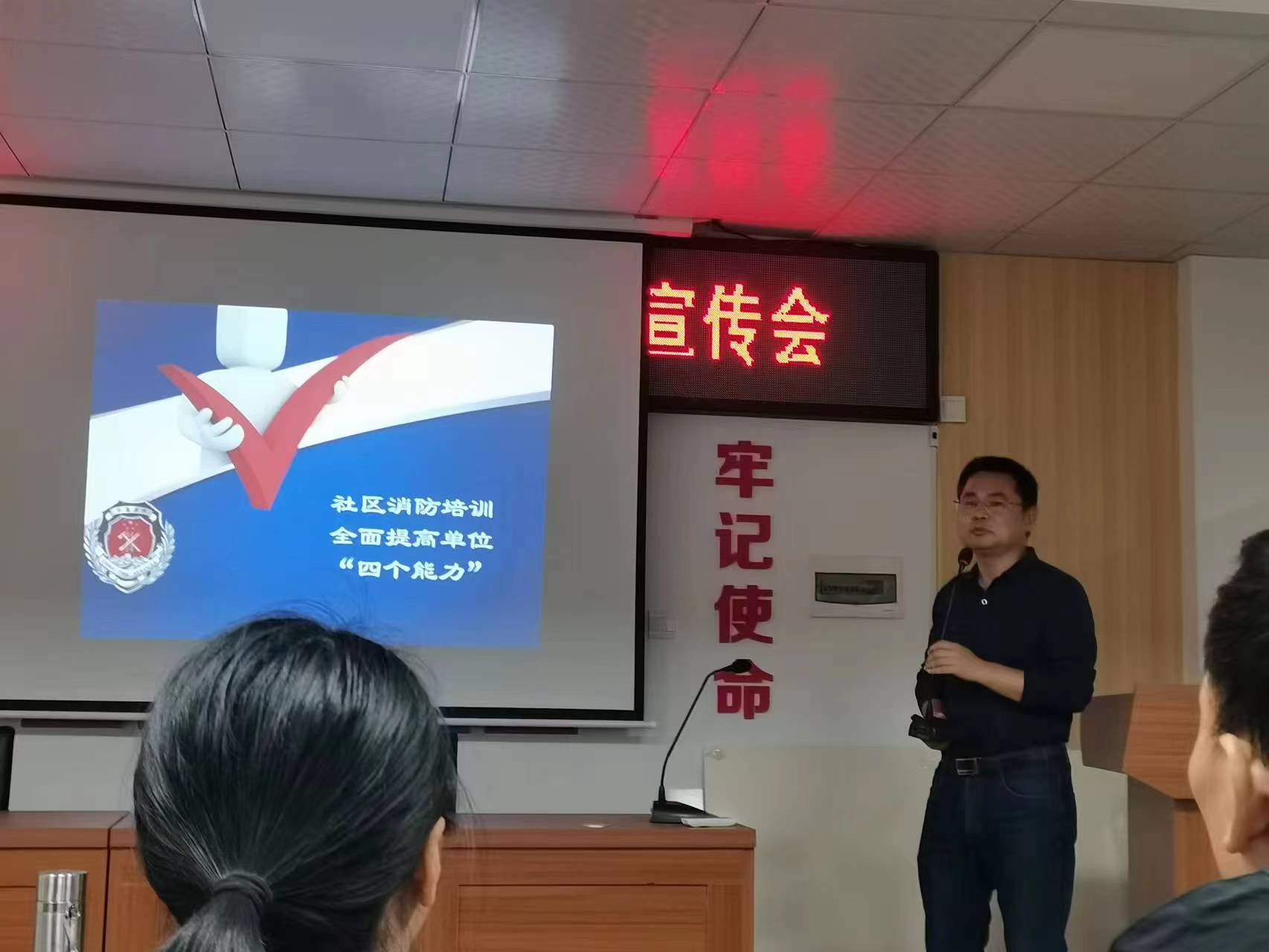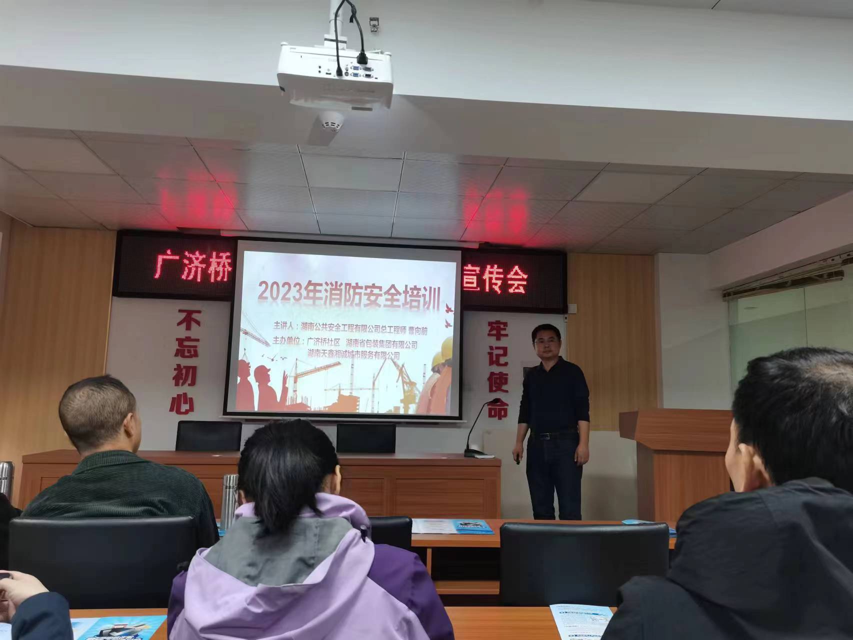 為進(jìn)一步加強社區(qū)消防安全意識,推進(jìn)社區(qū)消防安全宣傳工作,4月27日,湖南公共安全工程有限公司總工程師曹向前受邀前往廣濟(jì)橋社區(qū)開展消防安全培訓(xùn)。此次培訓(xùn)主辦單位為長沙市雨花區(qū)廣濟(jì)橋社區(qū)、湖南省包裝集團(tuán)有限公司、湖南天鑫湘城服務(wù)有限公司。