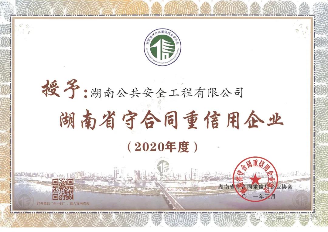 2021-07-09近日,2020年度湖南省“守合同重信用企業(yè)”名單出爐,憑借著誠信守法的良好信譽、嚴謹規(guī)范的合同管理體系以及良好的經(jīng)營效益,湖南公共安全工程有限公司...